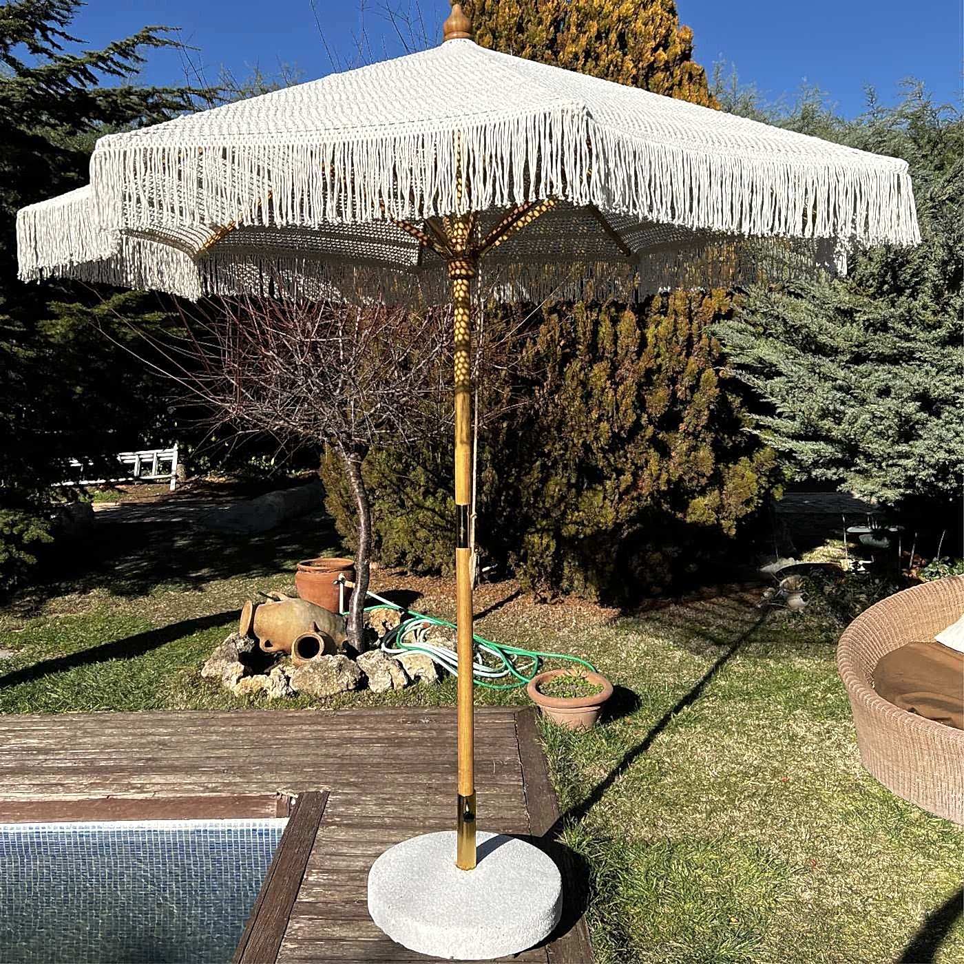 2.5 Mt Ahşap Makrome Bahçe Şemsiyesi