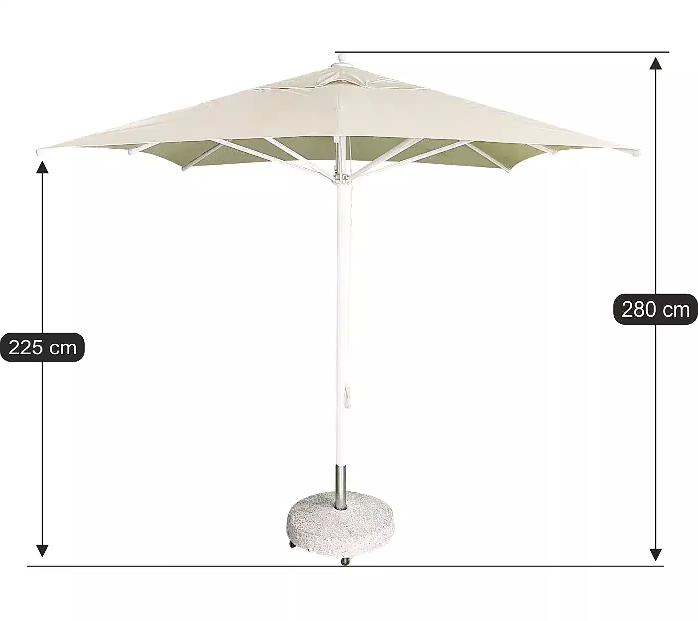 Tam gölge sağlayan akrilik kumaş ile rüzgara karşı dayanıklıdır. Güneşli yerlerin ayrılmaz bir parçası şık görüntüsü mekana kalite katarken Alüminyum gövdesiyle size unutulmaz bir deneyim sağlayacak.1 Kumaş Cinsi ve Özellikler