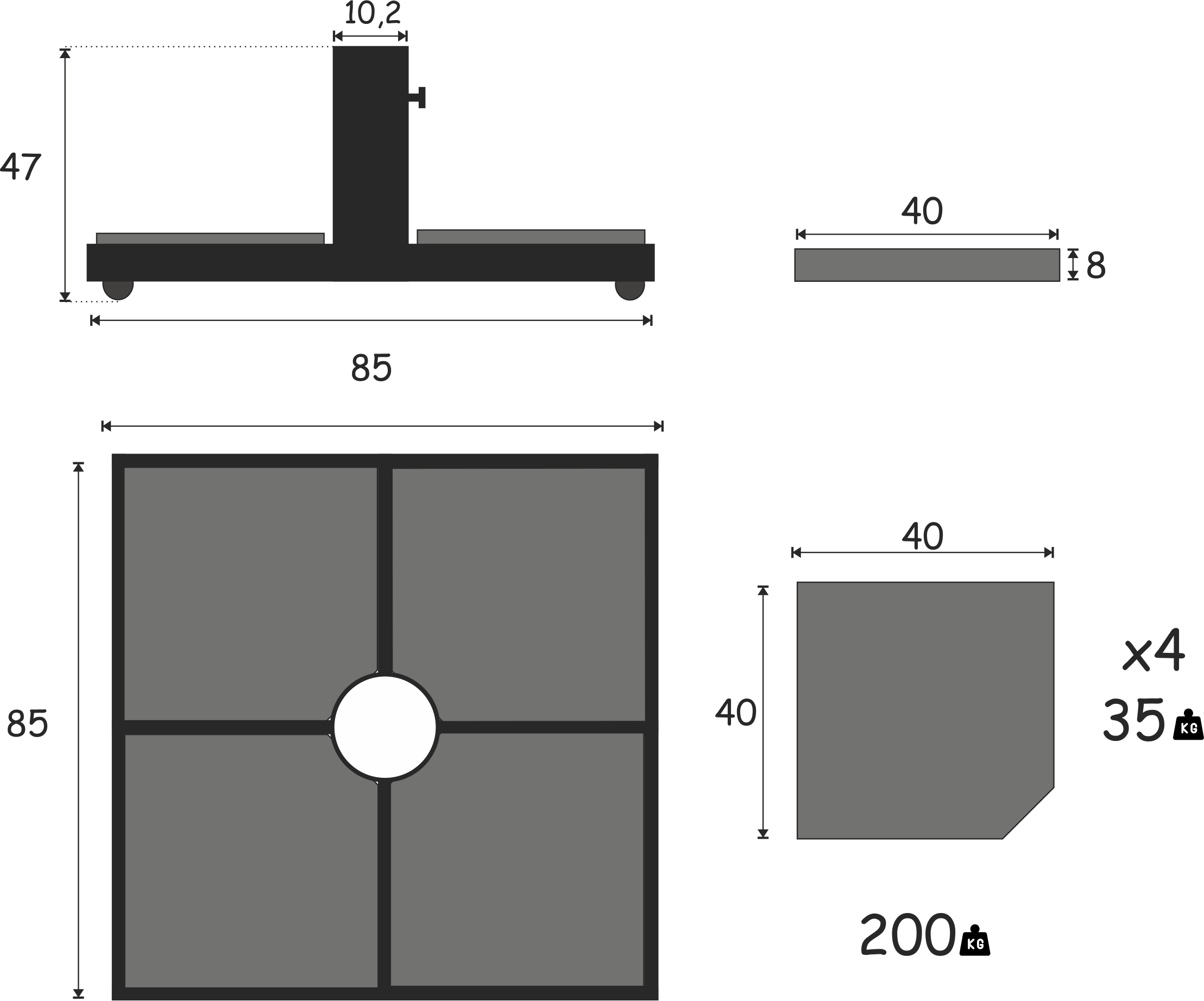 Gövdesi ve kolları alüminyumdan yapılmıştır dış hava koşullarına uygundur. Statik toz boyalıdır özel boya yapılabilir.