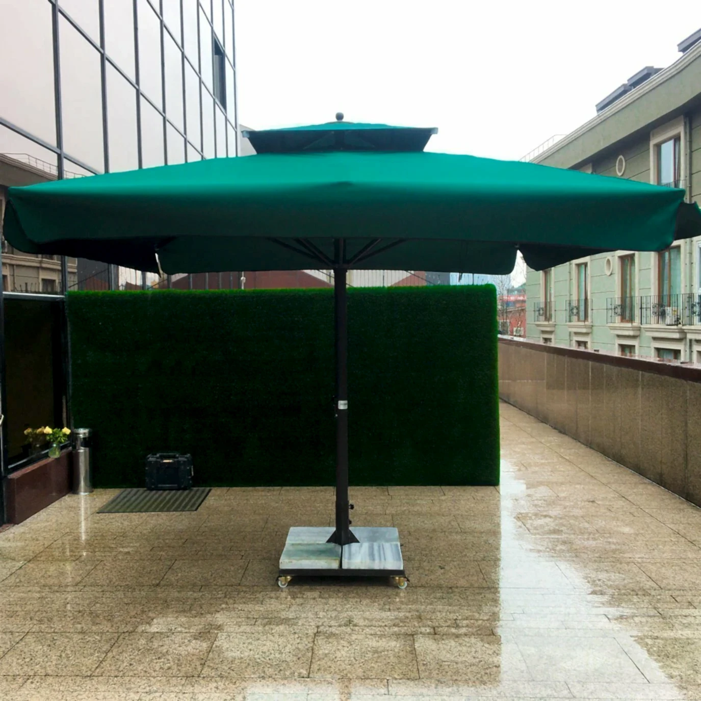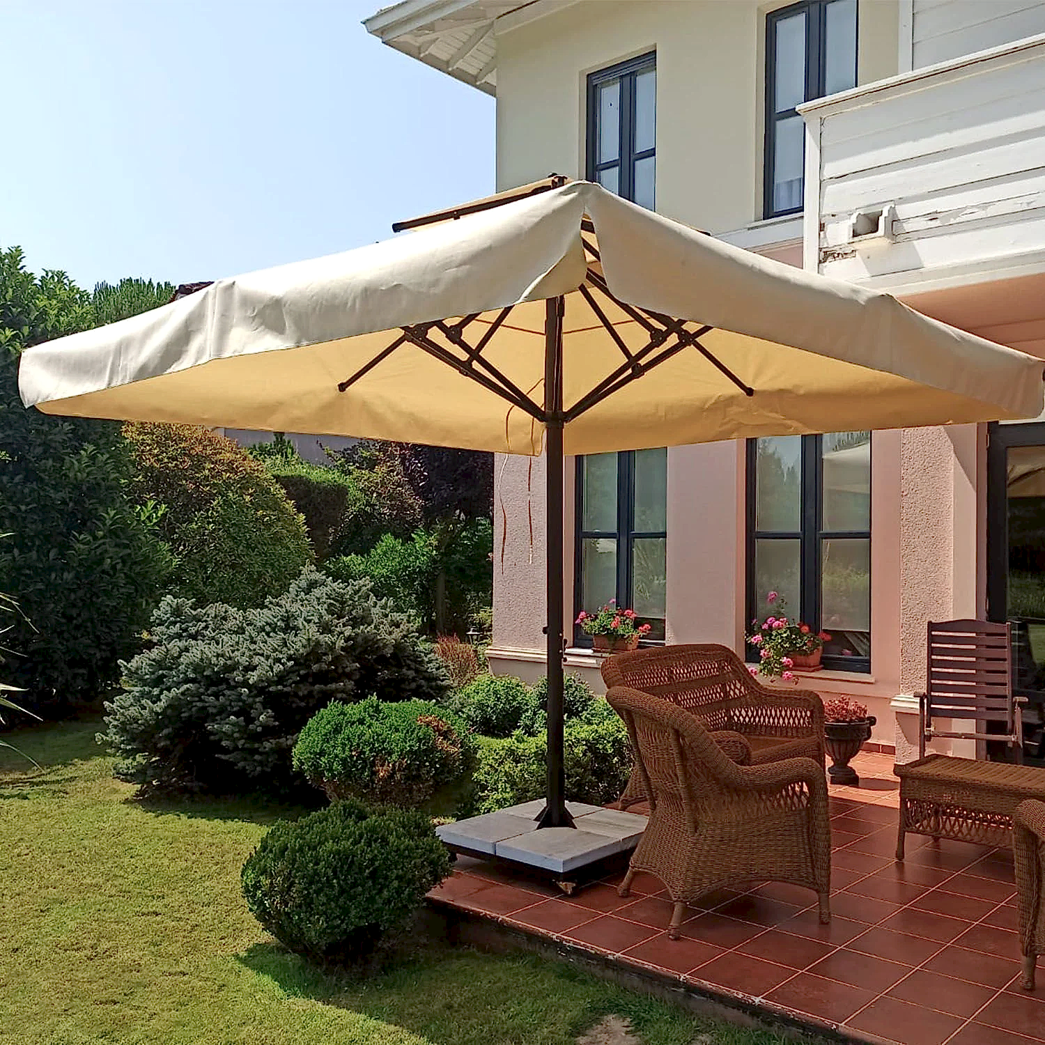 - Alanınızı net bir biçimde ölçün, unutmayın şemsiyenin üst kısmı havada olacağından üst kısmına denk gelen birşey olmamalıdır. Örneğin bir ağaç ya da bina çıkıntısı.