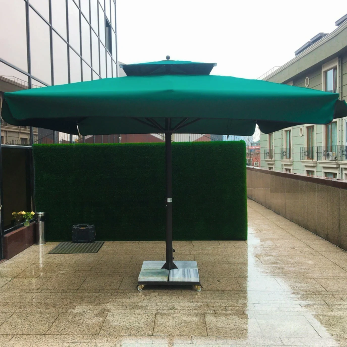 - Alanınızı net bir biçimde ölçün, unutmayın şemsiyenin üst kısmı havada olacağından üst kısmına denk gelen birşey olmamalıdır. Örneğin bir ağaç ya da bina çıkıntısı.