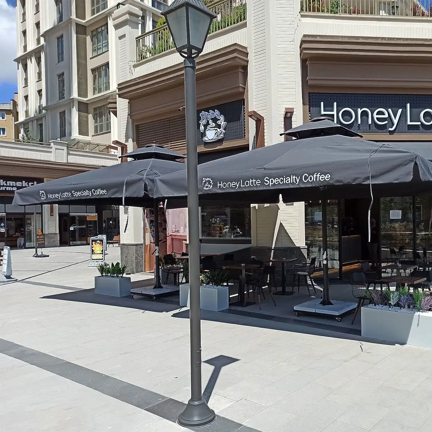 Tam gölge sağlayan akrilik kumaş ile rüzgara karşı dayanıklıdır. Güneşli yerlerin ayrılmaz bir parçası şık görüntüsü mekana kalite katarken Alüminyum gövdesiyle size unutulmaz bir deneyim sağlayacak. 1 Kumaş Cinsi ve Özellikler